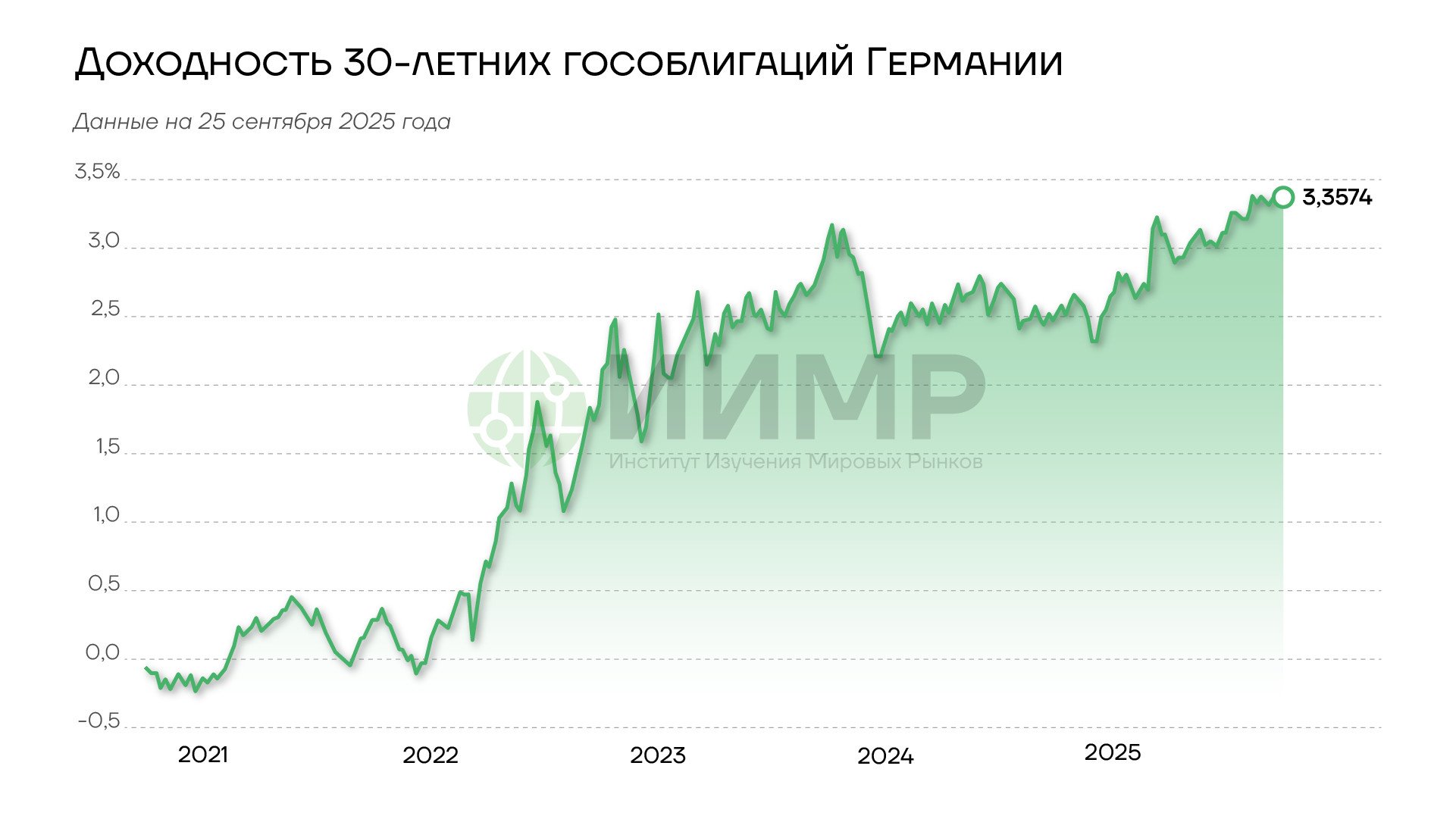 Доходность 30-летних облигаций Германии, 2021-2025гг