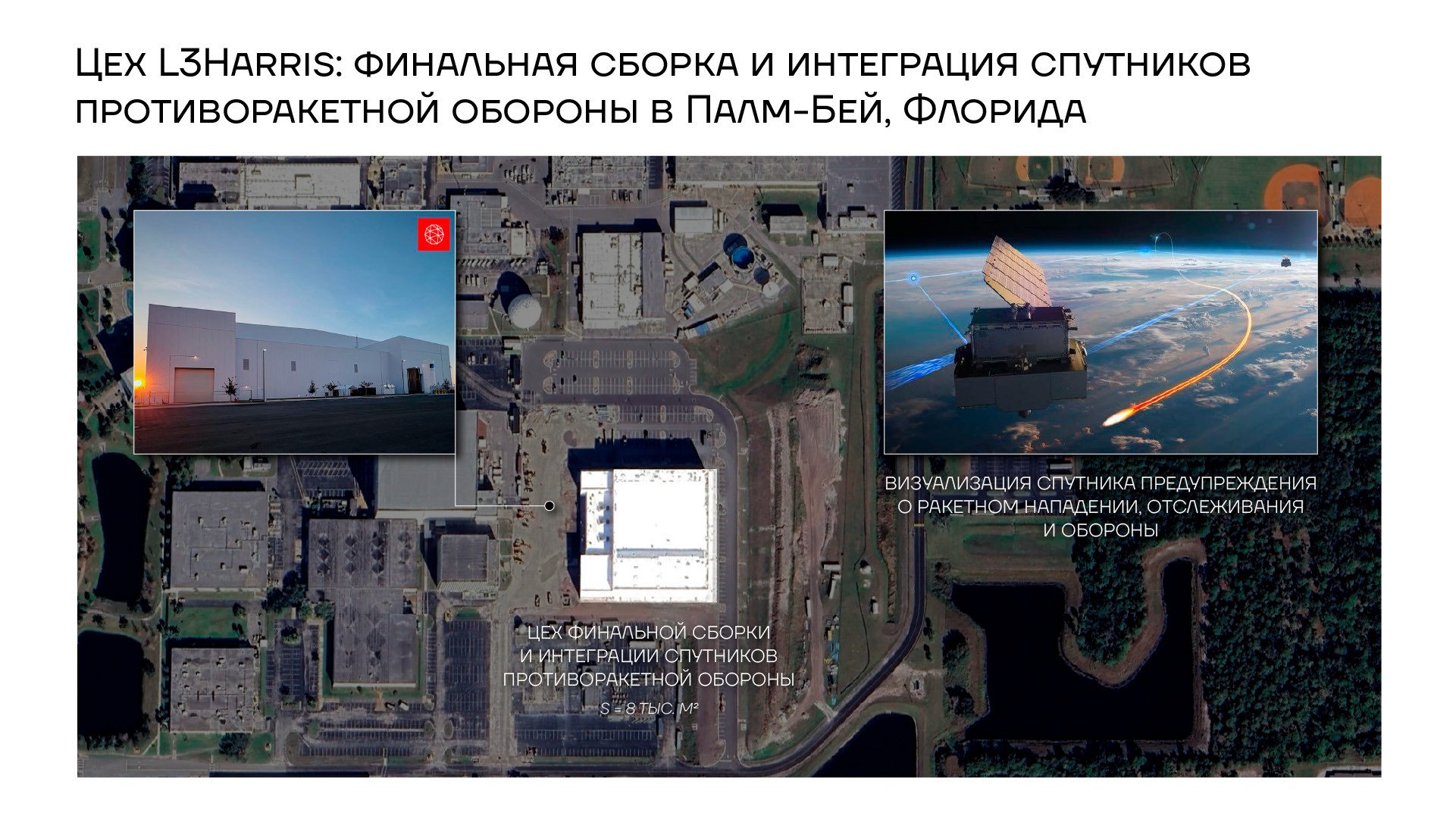 Произведенные в Форт-Уэйне полезные нагрузки для спутников противоракетной обороны будут поступать в Палм-Бей, Флорида. Там их соберут на открытом в августе 2025 года цехе финальной сборки и интеграции спутников. Его площадь составляет 8 тыс. м2. На новом предприятии L3Harris будут работать около 100 инженеров. Инвестиции составили 100 млн долларов.