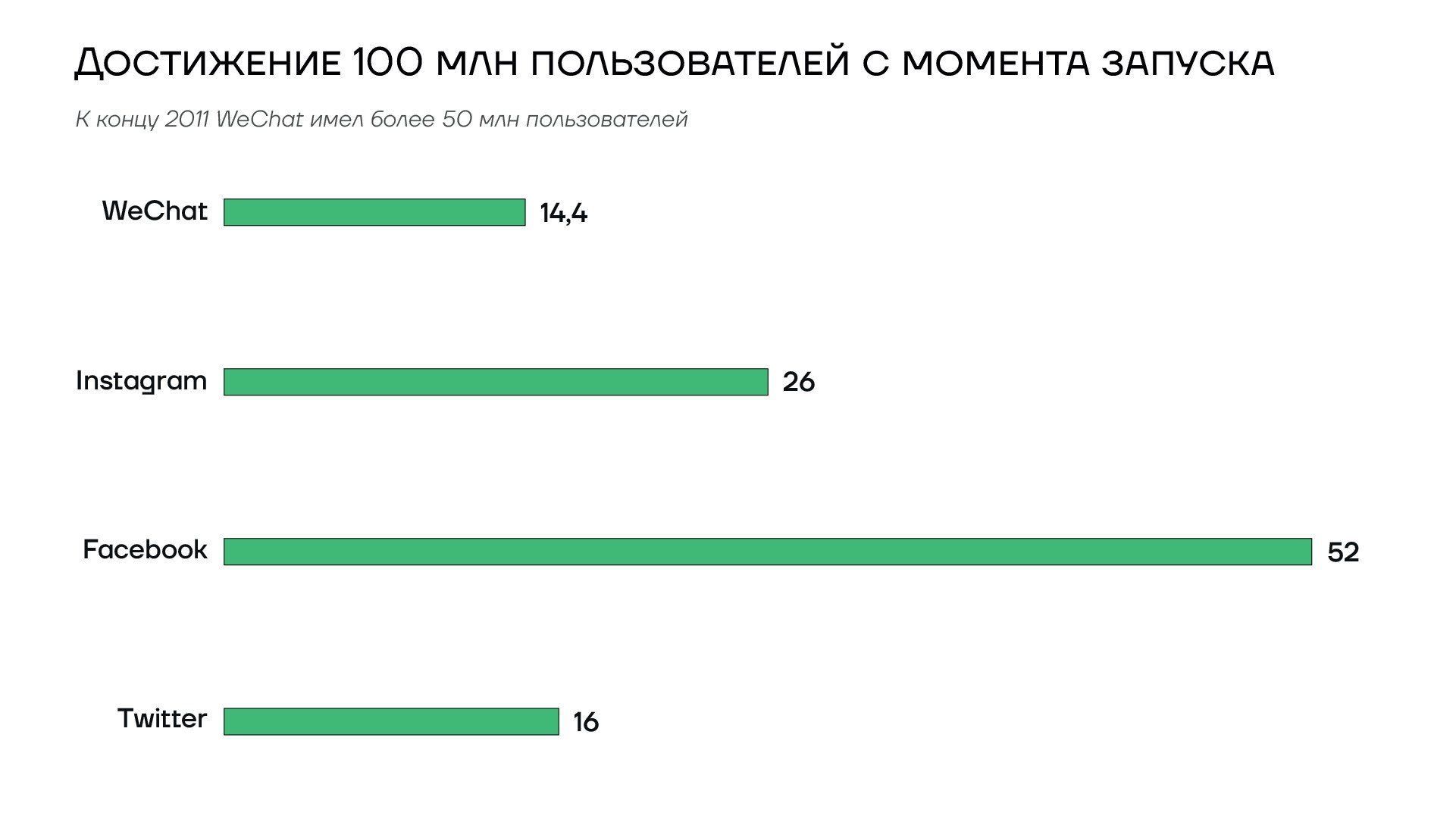 Достижение 100 млн пользователей мессенджеров и соцсетей с момента запуска
