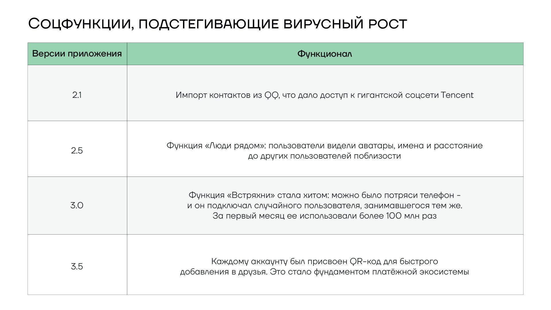 В 2011 WeChat начал добавлять соцфункции, каждая подстёгивала вирусный рост: