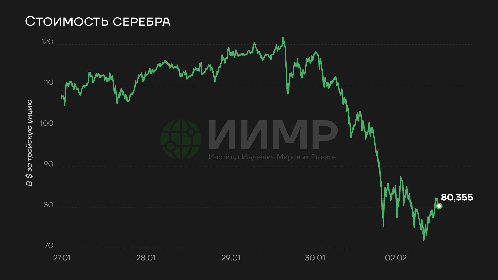 Цена на серебро, 27 января - 02 февраля 2026 года