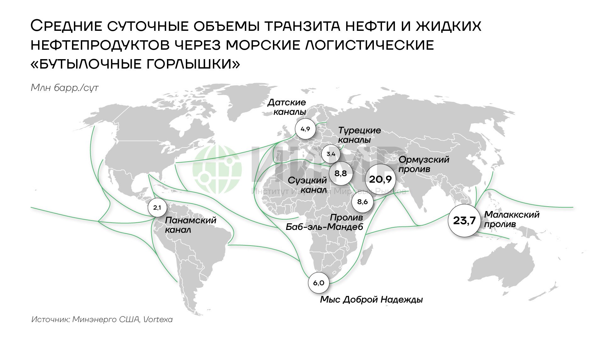 Среднесуточные объемы транзита нефти и жидких нефтепродуктов через морские логистические "бутылочные горлышки"