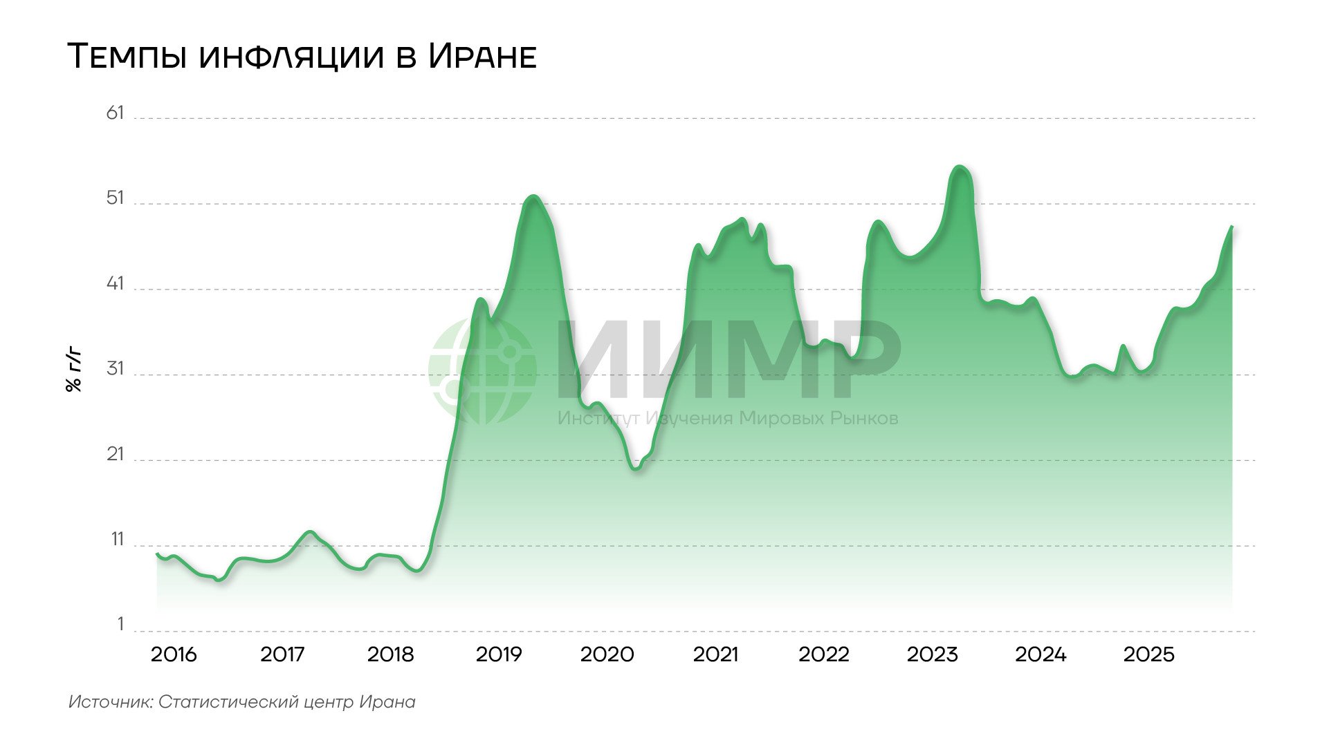 Темпы инфляции в Иране, 2015-2025гг