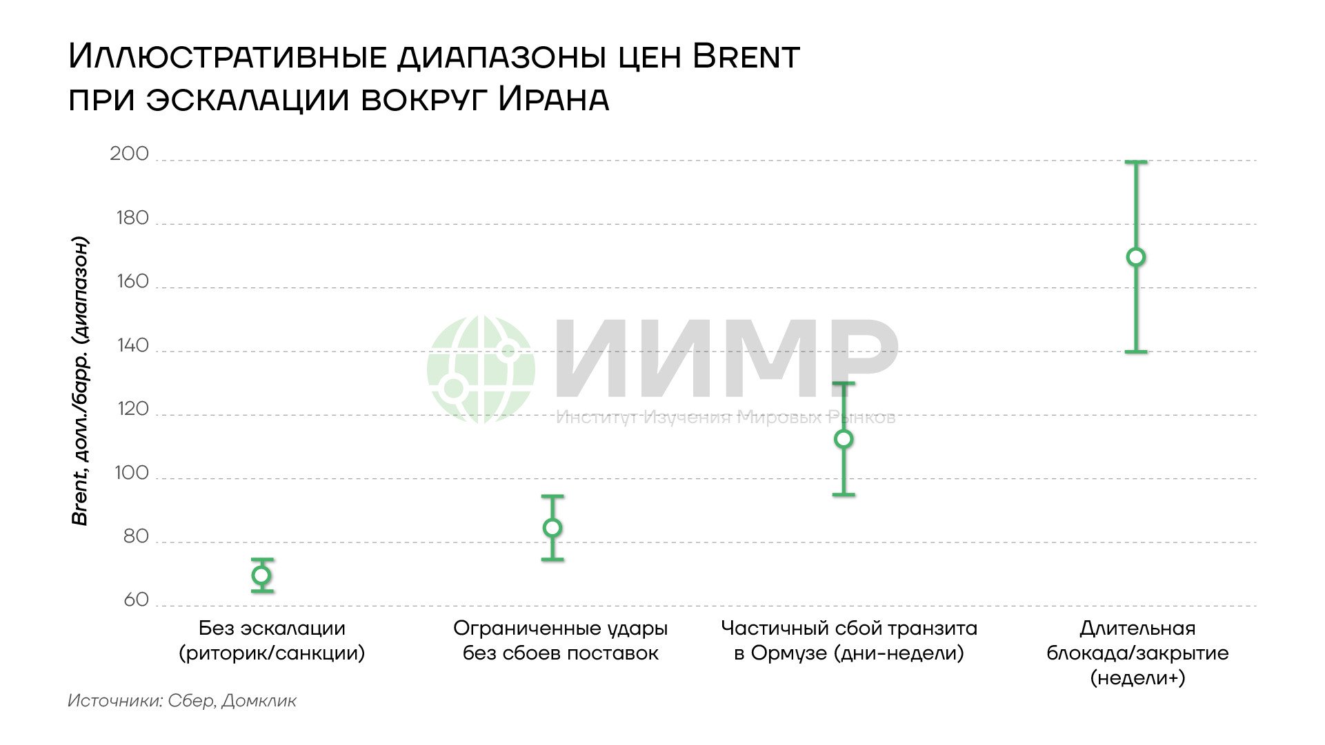 Иллюстративные диапазоны цены на нефть марки BRENT при эскалации ситуации вокруг Ирана