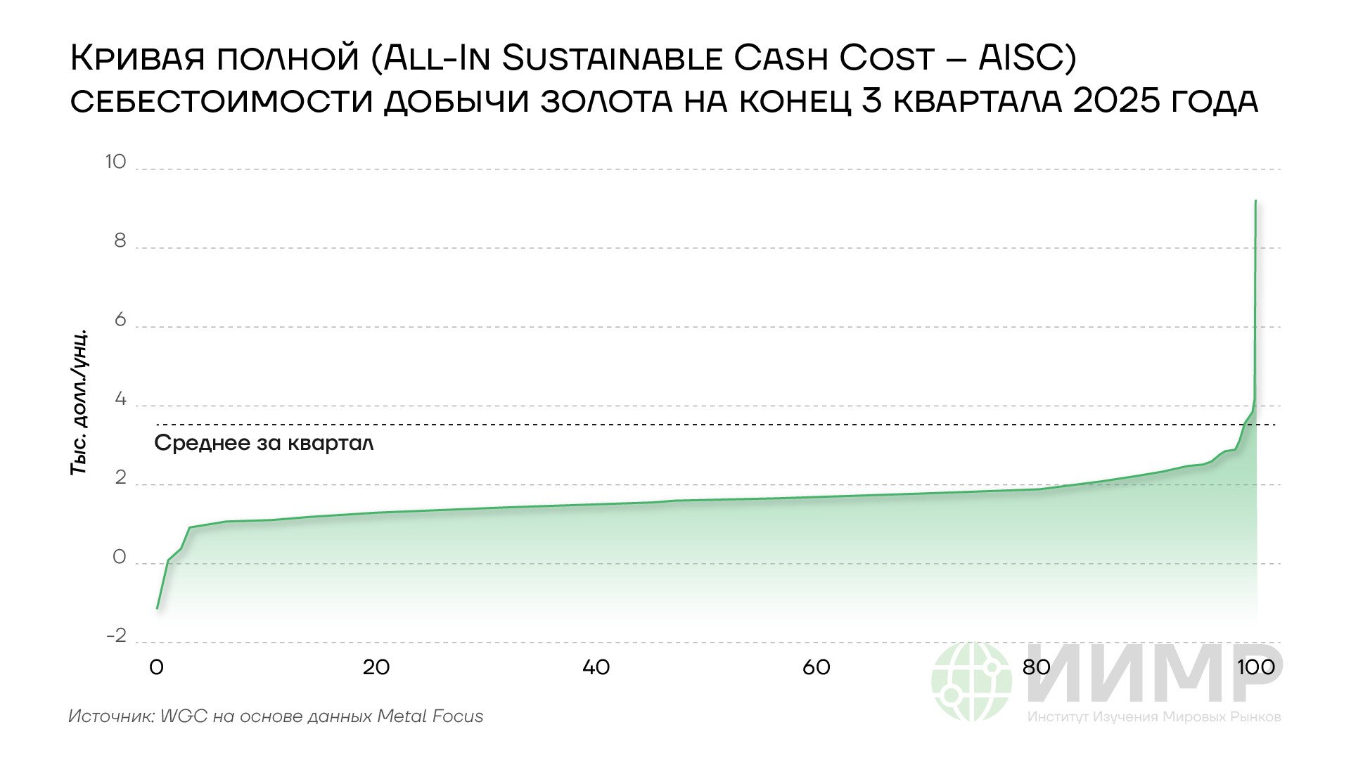 Кривая полной себестоимости золота на конец III квартала 2025 года
