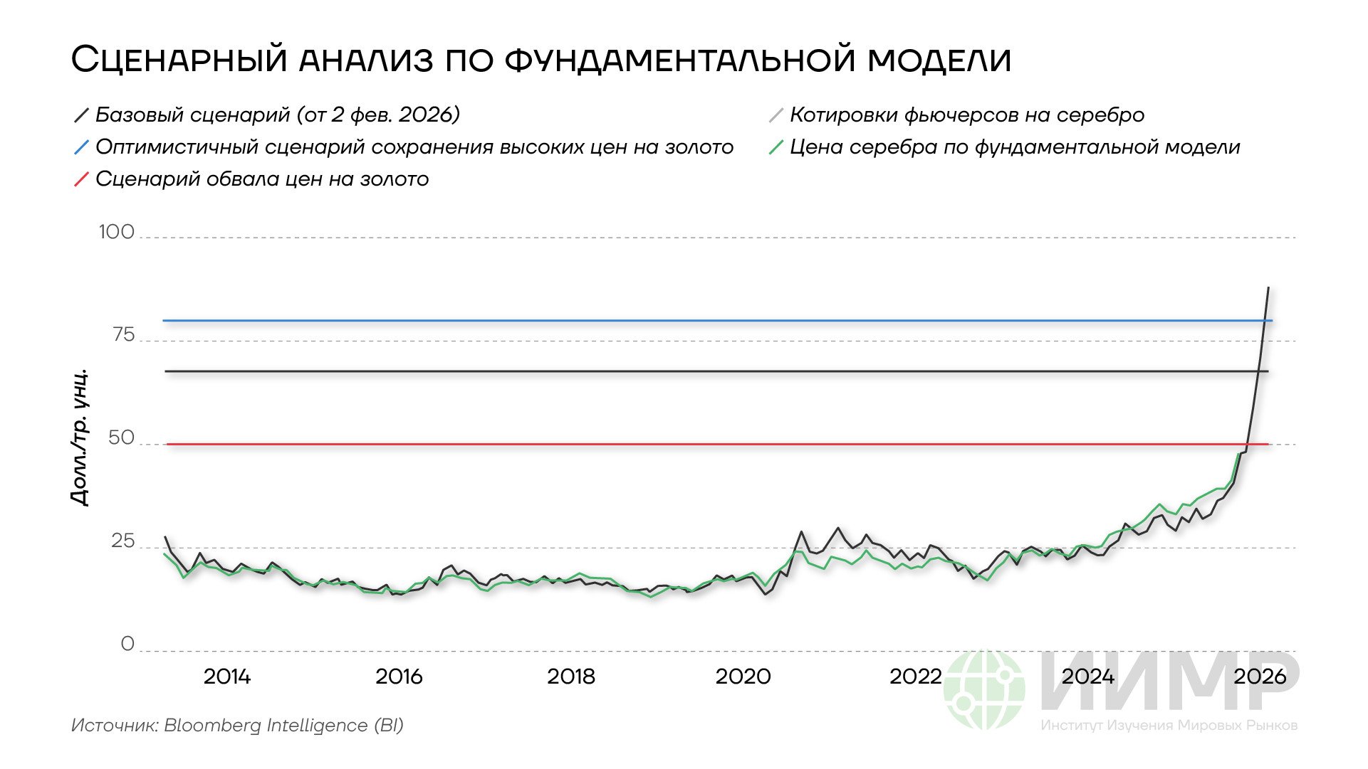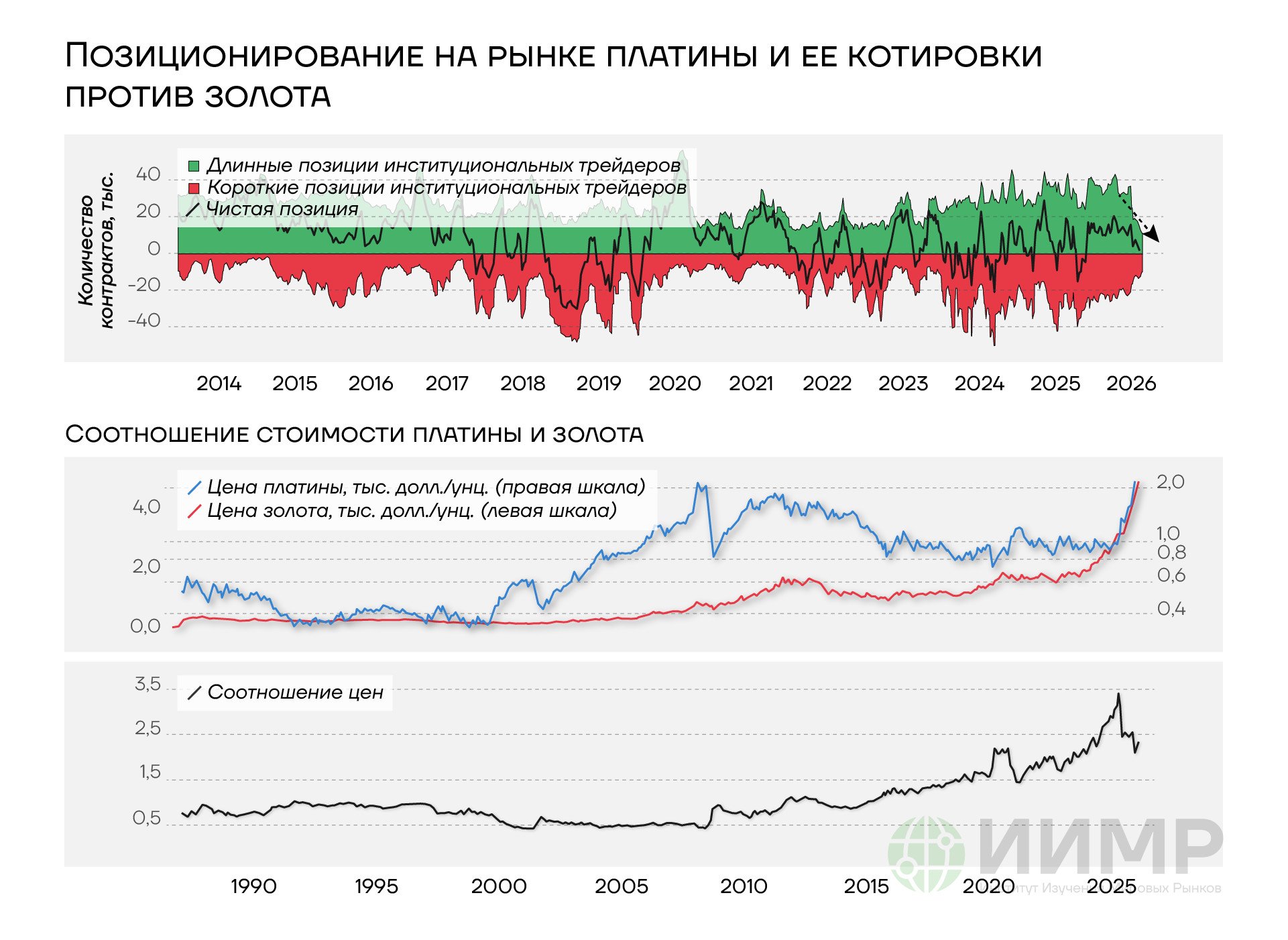В каком-то смысле эту ситуацию можно сравнить с европейским энергокризисом 2022–2023 годов, связанным с геополитическим риском (санкции против России), но имевшим более глубокие причины в хронической недоинвестированности европейского сектора добычи энергоресурсов. Пузырь цен на газ в Европе и ралли глобальных цен на нефть тогда быстро сошли на нет за счет хорошей погоды, сокращения потребления и альтернативных поставок энергоносителей: реакция предложения оказалась ключевым фактором кратного падения котировок газа и нефти во второй половине 2022–2024 годов. Поэтому тот энергокризис, равно как и пузырь на рынке какао (рост цен в 5 раз за 2023–2024 годы и последующее падение в 4 раза в 2025–2026 годах), дают хорошее понимание того, когда и при каких условиях может лопнуть пузырь и на рынке драгметаллов: