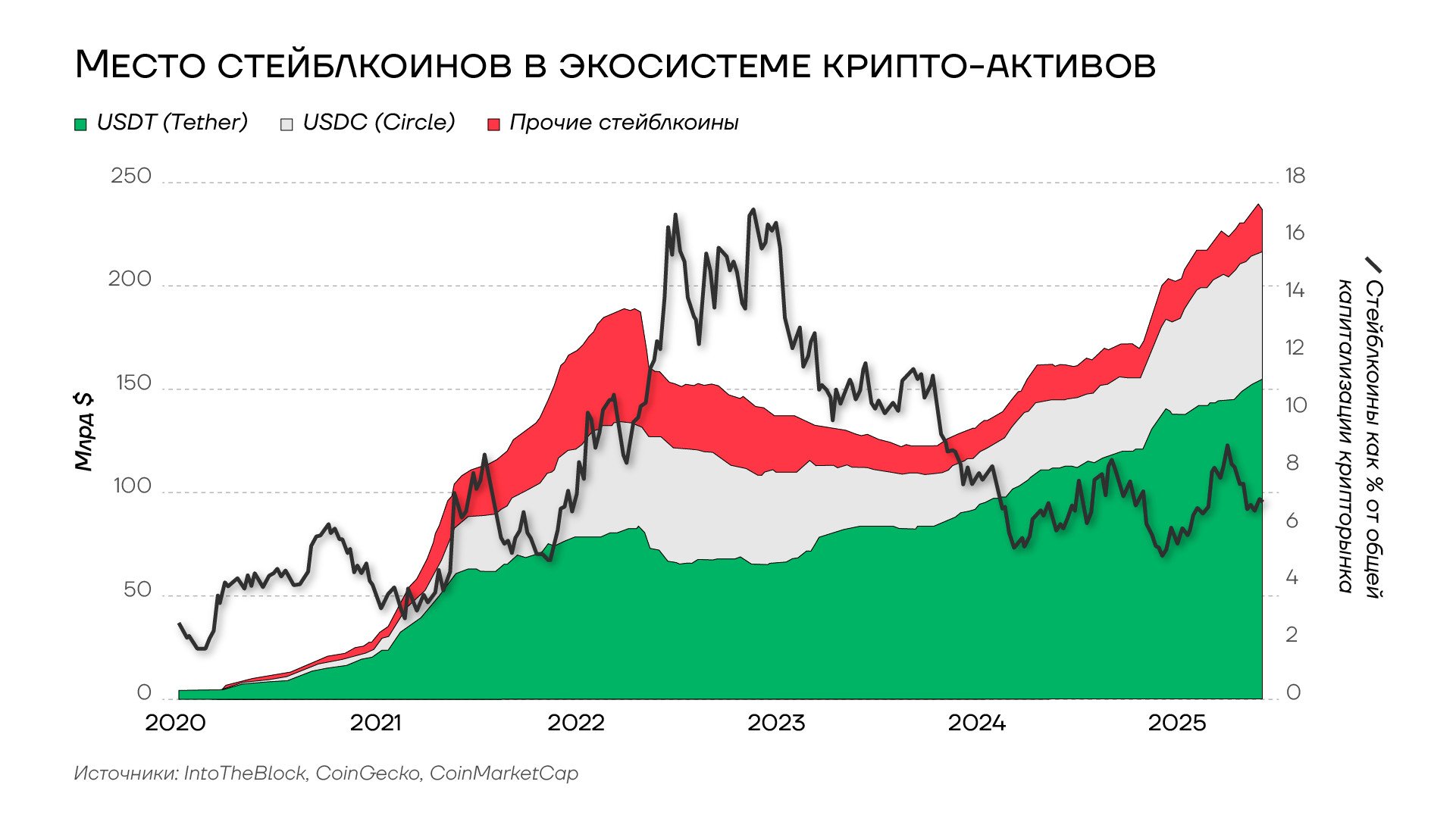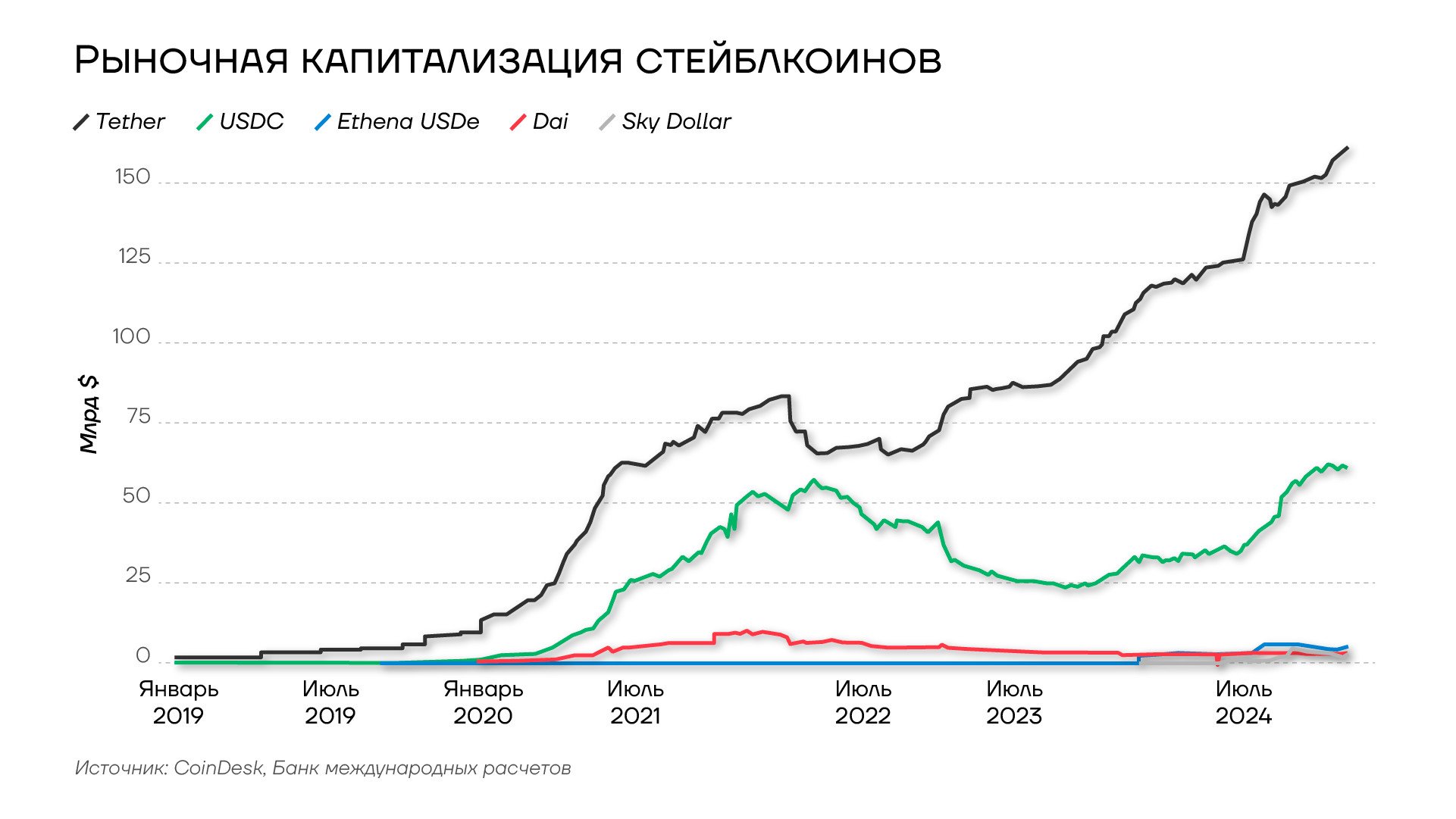 Рыночная капитализация стейблкоинов, 2019-2025гг